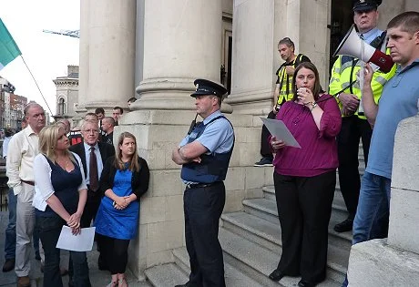 During the speeches a number of councillors joined the protest including Christy Burke (Ind), Joan Collins (PBP), Mannix Flynn (Ind), Marie Metcalfe (Ind), Cieran Perry (Ind), Niall Ring (Ind), Bríd Smith (PBP), and Joan Collins (PBP). Killian Forde (Labour) and Larry O’Toole (SF) had stood with protesters during the earlier part of the protest.