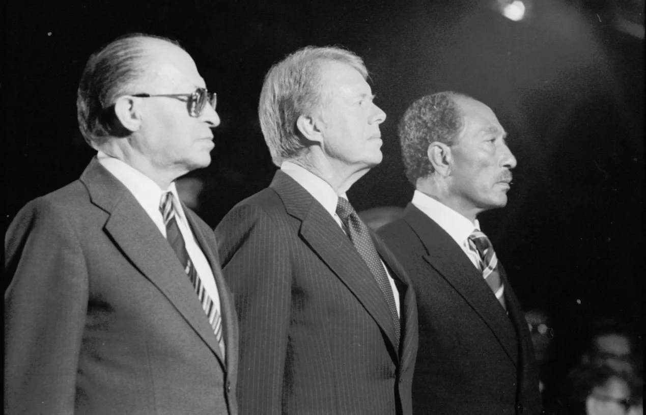 Israeli PM Menahem Begin, US President Jimmy Carter and Egyptian President Anwar Sadat at Camp David