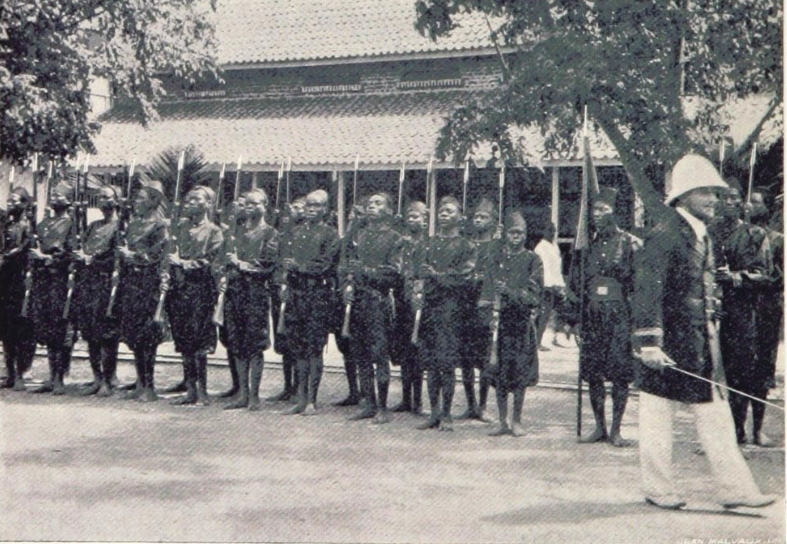 1899 photo of members of the Force Publique. It grew to a force 40,000 strong; vital for the suppression of indigenous resistance to colonial rule